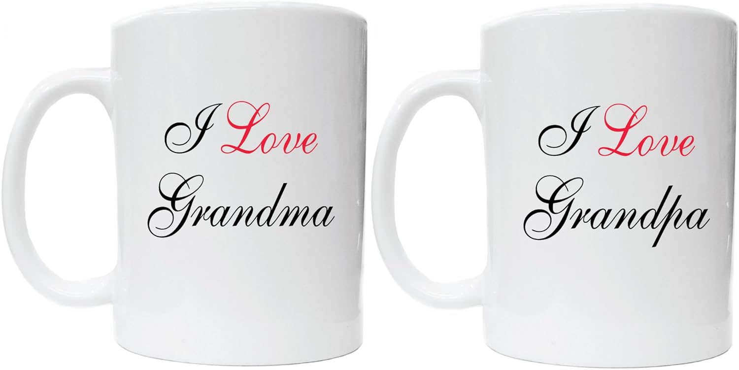 I Love Grandma And Grandpa Cursive Set Of Two Gift Coffee Cups